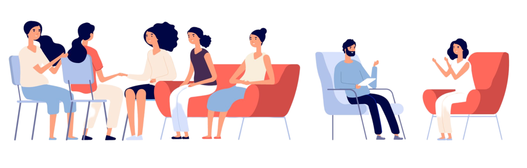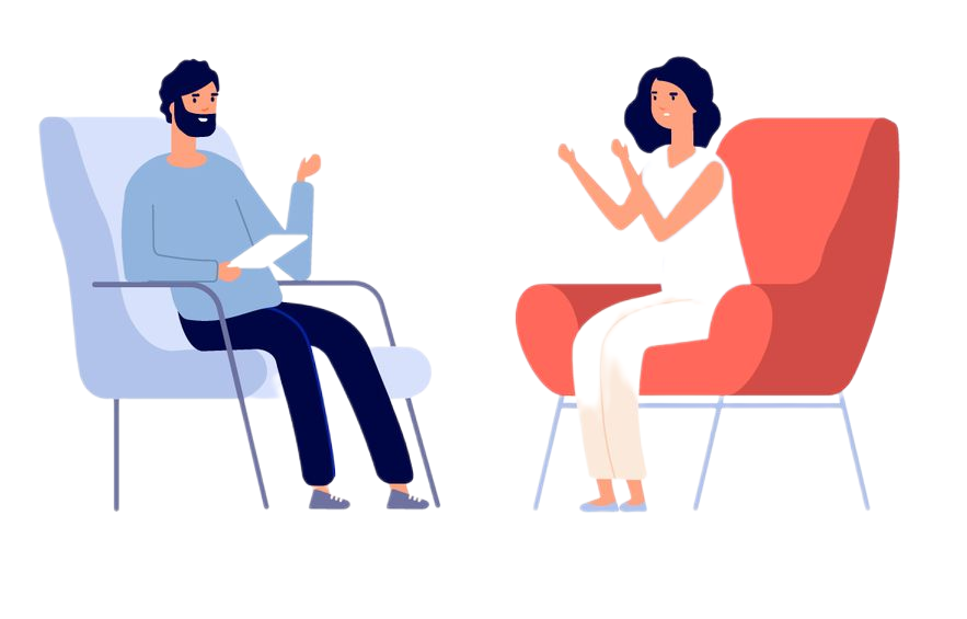 During the session, the primary therapist and client discuss the client’s concerns, goals, and experiences.